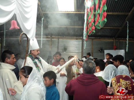 El 19 por la noche, Monseñor Eduardo presidió la celebración eucarística con la comunidad del Centro de Jacaltenango. Por la gracia de Dios, esta comunidad ha crecido notablemente. Hace apenas unos tres años, la comunidad se encontraba reducida a pocos hermanos. Ahora hay varios centenares de hermanos que asiduamente participan en la vida de la comunidad. Al igual que hicieron las comunidades de Concepción Huista, actualmente las comunidades de Jacaltenango están en proceso de organización, para solicitar también ser erigidas como Parroquia Católica Renovada. |