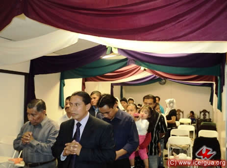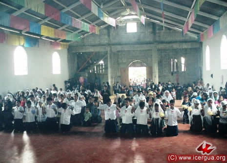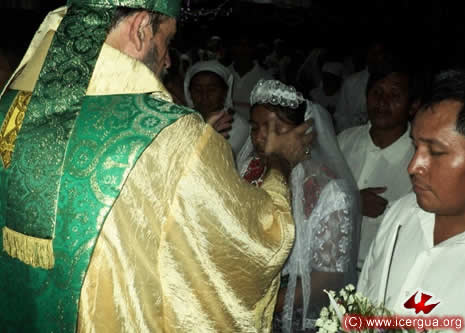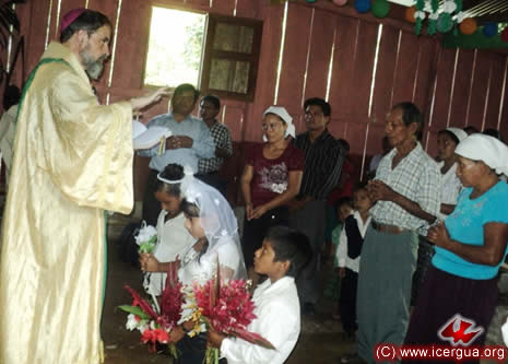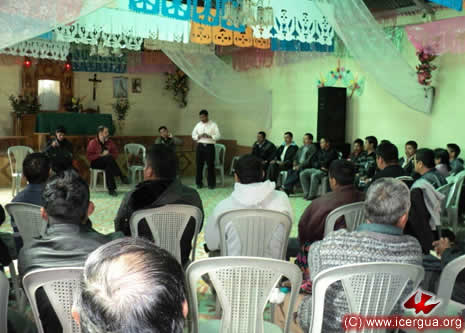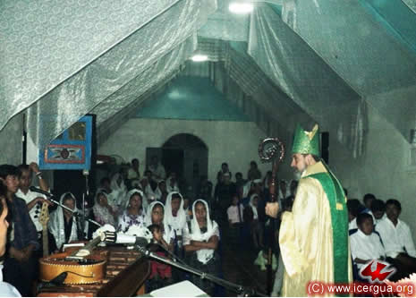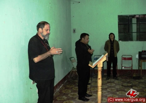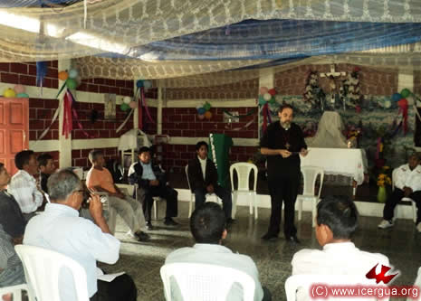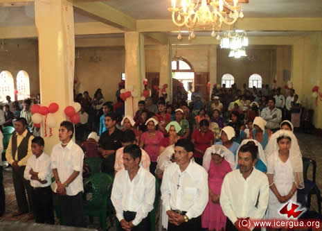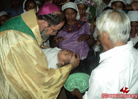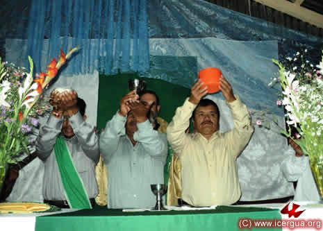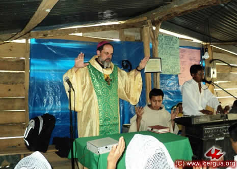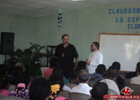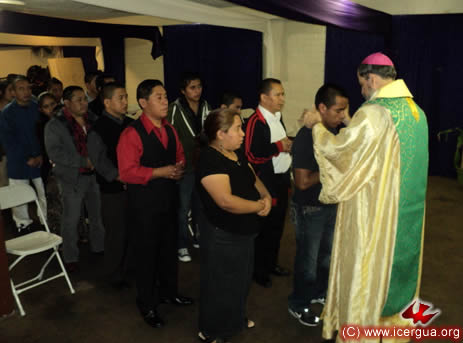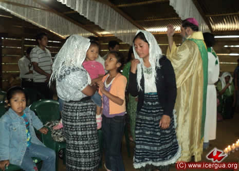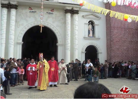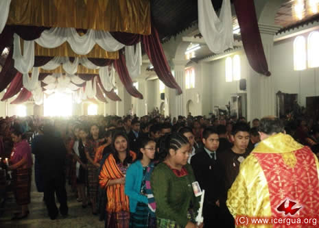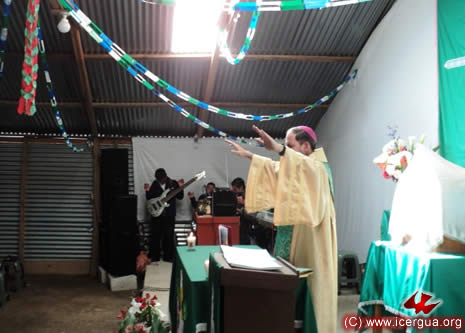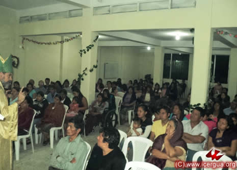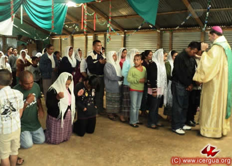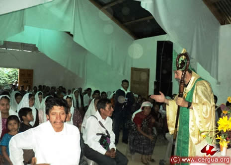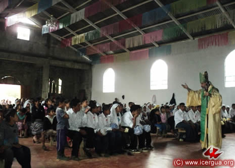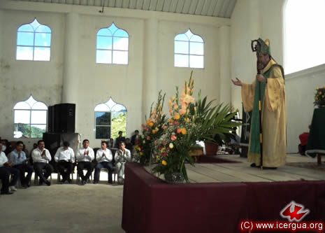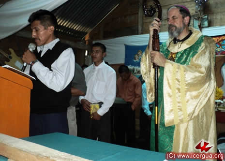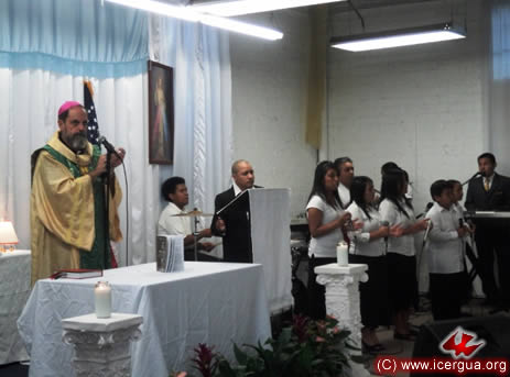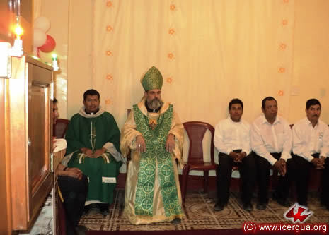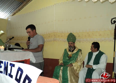 Junto al obispo estaban el Padre Rigoberto Upún, Vicario General de Icergua y co-párroco junto al Padre Francisco Simón de la Catedral. Dado que el Padre Francisco estaba de viaje, los sustituía el recién ordenado Padre Orlando López. |
