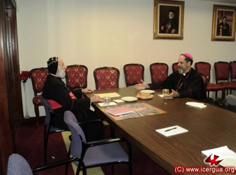 La razón de la visita era encontrarse con Su Eminencia Mor Clemis Eugenio, quien ha sido delegado por Su Santidad Ignacio, el Patriarca de Antioquía, para sostener una serie de diálogos teológicos con nuestra Iglesia.