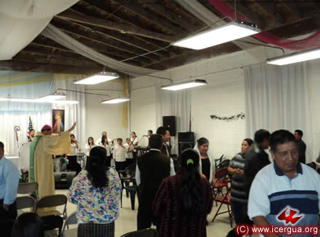 Por la noche, Monseñor Eduardo llegó hasta la comunidad Voz de Restauración, ubicada en la tercera calle del centro de Los Angeles.