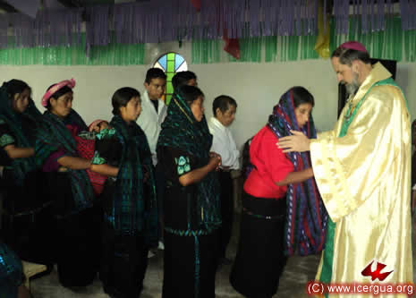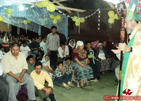 Al final de la reunión líderes de varias comunidades expresaron su decisión de ingresar a la Iglesia y el obispo encomendó al Padre Pedro Martínez, Párroco de Cuilco, que fuera quien siguiera adelante con los diálogos y el servicio pastoral a la comunidades que habían optado por entrar en alianza con nosotros. |