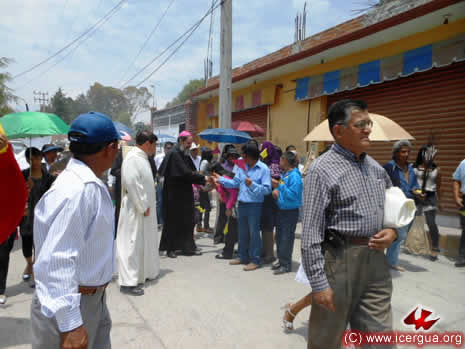 El encuentro había sido preparado hasta en sus mínimos detalles. Estaban presentes los Fiscales o Mayordomos de la Comunidad, los representantes de las autoridades civiles y varios grupos de expresión artística. Iguamente se había preparado comida para toda la comunidad. |