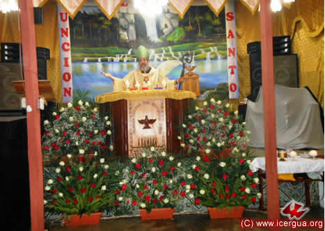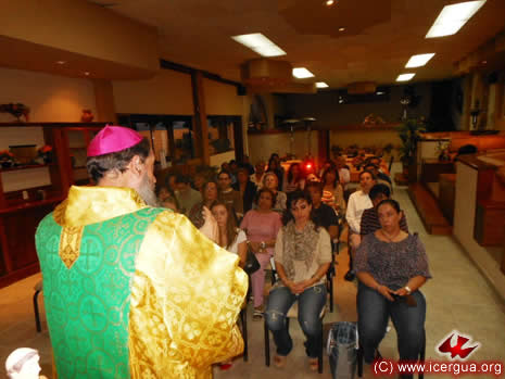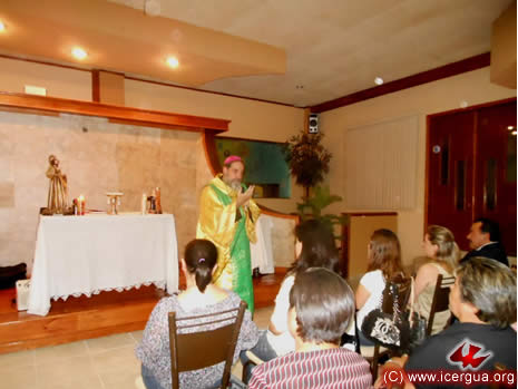 El sábado 9 por la noche, el obispo llegó a la Comunidad Restauración en el Espiritu Santo, para presidir la Eucaristía. |
