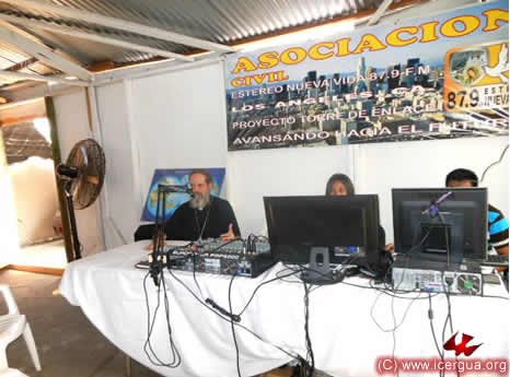 El sábado 9 por la tarde, Monseñor Eduardo llegó hasta la cabina 3 de Radio Stereo Nueva Vida de Nucá, Santa Cruz Barillas, Guatemala, ubicada en la 36 calle de Los Ángeles California. |