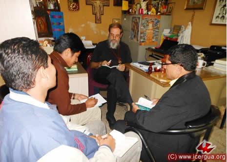 El lunes 4 por la mañana, el obispo tuvo un breve encuentro con algunos de los misionero que trabajan en México. Bajo la coordinación del Padre Nicolás Gómez, quien actúa como Vicario General de ICREM (Iglesia católica renovada ecuménica en México), trabajan los Padres Mario Lópet, Dionisio Montiel, Roberto García e Israel Lobato. |