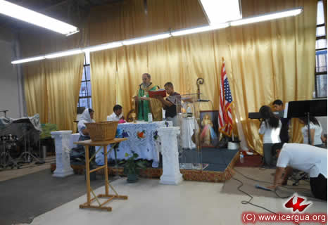El 8 por la tarde, Monseñor Eduardo presidió la celebración de la Eucaristía con la comunidad parroquial de San Miguel Arcángel, que se reune en 227 W Jefferson, Los Ángeles. |