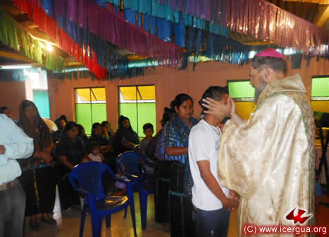 Al caer de la trade, el obispo visitó la comunidad Pentecostés, de Santiago Atitlán, para administrar la Confirmación y realizar el envío misionero de un grupo de jóvenes. |