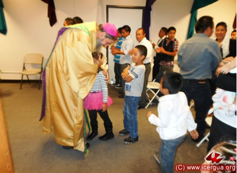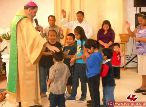 Los hermanos iniciaron recientemente un ministerio especial para niños, para lo cual contruyeron un pequeño salón adyacente al templo. El obispo estuvo muy complacido por la iniciatuva y bendijo a los niños al inicio de la celebración. |