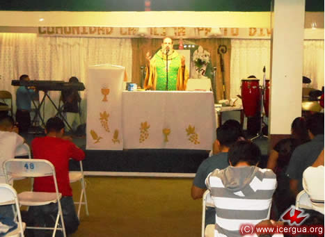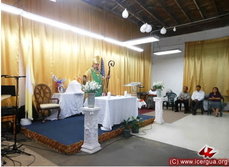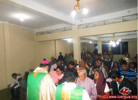 Por la noche, Monseñor Eduardo llegó hasta la comunidad Restauración en el Espíritu Santo, para celebrar la misa con ellos. |