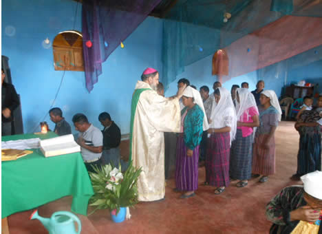 El domingo 25, al caer del día, el obispo visitó la comunid de Los Pirires, San Juan Sacatepéquez, para administrar la confirmación y la comunión solemne a dos grupos de hermanos. |
