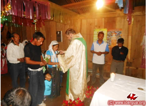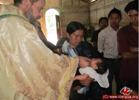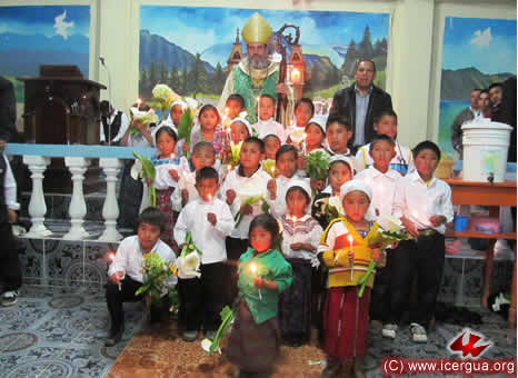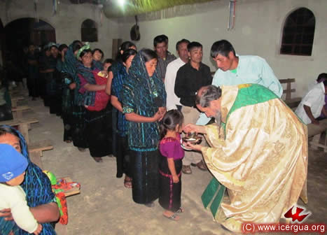 La comunidad de Chuitzanchaj se ha caracterizado porque ya desde hace varios meses ha reconocido el derecho que tienen todos los niños bautizados de participar en la comunión. Los niños han sido preparados por sus padres y se acercan a recibir el divino sacramento con devoción, como puede verse en la foto de la derecha. |