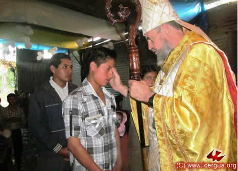 El domingo 25, por la tarde, el obispo llegó a la comunidad de Las Palmas, San Juan Sacatepéquez para administrar la confirmación a 22 jóvenes y señoritas. |