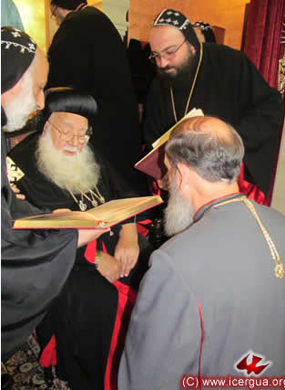 En la ceremonia, además de Su Santidad, participaron y dieron el gesto de bienvenida y comunión otros ocho obispos: Mor Teófilo George Saliba, Arzobpo de Monte Líbano; Mor Clemis Eugenio Kaplan, Arzobispo Vicario Patriarcal de la Arquidiócesis del Oeste de los USA; Mor Atanasio del Monasterio Mor Ignatius de Omalor, India; Mor Clemis Daniel, Arzobispo de Beirut; Mor Chrisostomos Miguel, de las instituciones patriarcales de Atchaneh, Líbano; Mor Timoteo Mateo, Secretario Patriarcal; Mor Timoteo Mateo, secretario del Patriarcado para los asuntos de la India; Mor Crisóstomo Youhanna, Arzobispo de Argentina.