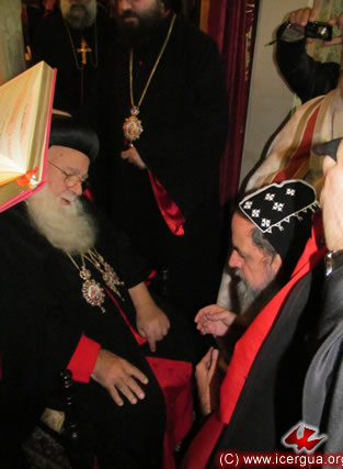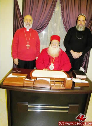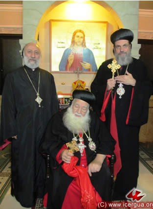 En la foto de la izquierda, junto a Su Santidad y a Mor Santiago Eduardo, se encuentral Mor Clemis Daniel, Arzobispo de Beirut, Líbano.