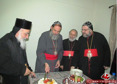 El miércoles 6 de marzo, acompañado por Sus Emiencias Mor Clemis Eugenio y Mor Crisóstomo Miguel, nuestro Arzobispo Mor Yaqub Eduardo, hizo una visita de agradecimiento a los Metropoltanos cercanos, que habían participado en el ceremonia de su tonsura y de su recepción como Arzobispo de la Iglesia Siro-Ortodoxa de Antioquía. |