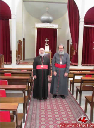 A la derecha: Mor Clemis Eugenio y Mor Santiago Eduardo, en la Catedral de Santiago de Serug.