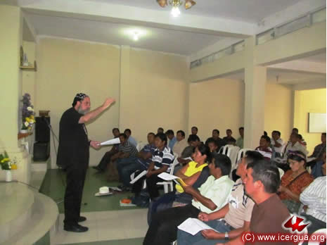 El Rev. Paulino Bizarro, quien actualmente está haciendo su Ejercicio Pastoral Supervisado en el área, fue el encargado de hacer el informe conclusivo de la situación pastoral de la zona. En general el balance es muy positivo. |