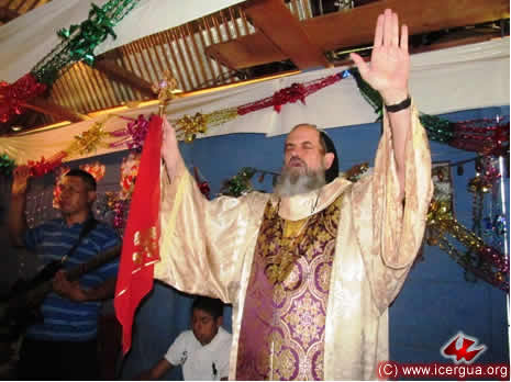 Al final de la celebración, el grupo de jóvenes y el grupo de señoras encargadas de la oración, entregaron sendos recuerdos al Arzobispo como muestra de aprecio y felicitación por la creación de la Arquidiócesis de Centro América. Concelebró la Eucaristía el Padre Orlando, párroco local. |