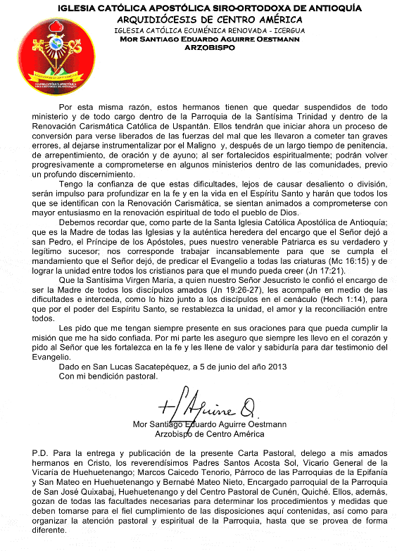 | 05: CARTA PASTORAL DEL ARZOBISPO A LA PARROQUIA DE LA SANTÍSIMA TRINIDAD DE USPANTÁN. |