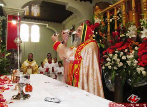 El Arzobispo, antes de iniciar con la celebración de la Eucaristía, explicó durante largo tiempo la gran bendición que significa el que actualmente seamos Arquidiócesis de la Santa Iglesia Católica Apostólica Siro-Ortodoxa de Antioquía. |