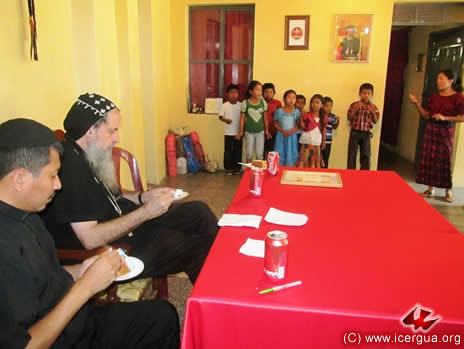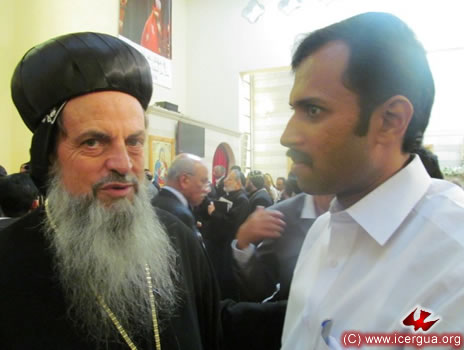Entre las personas que presentaron el pésame al Arzobispo está el padre de una de las cantoras de la comunidad siria de Guatemala, originario de Sadad. Aunque no conocía al Arzobispo personalmente y la comunicación no fue fácil, se mostró muy complacido porque for facebook conocía ya a Mor Santiago Eduardo, a través de la comunidad siria de Guatemala. |