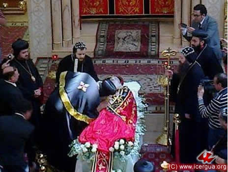 | 26: EL PAPA COPTO TEODORO II SE ENCUENTRA CON EL SÍNODO SIRO-ORTODOXO AL PRESENTAR EL PÉSAME. |