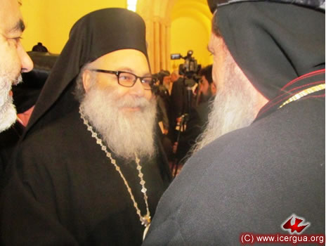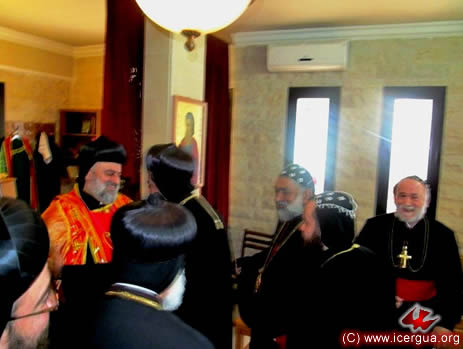 El viernes 28 por la noche, de regreso en Damasco, nuestro Arzobispo se encontró por algunos momentos con Su Beatitud Ignacio José III, Patriarca sirio-católico. Perteneciente a la Iglesia Católica Romana, Su Beatitud, al igual que los demás Patriarcas católicos romanos de la región, mantienen una relación estrecha y de gran amistad con nuestra Santa Iglesia. Su Beatitud participó en todas las ceremonias celebradas primero en Beirut y luego en Damasco. |