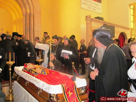 En la foto, junto al féretro el Padre Eugenio, secretario de Su Santidad Ignacio Zaqueo I Iwas durante los últimos tres años.