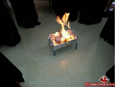 Terminado el escrutinio y después de que Mor Cirilo Efrén Karim aceptó la elección como nuevo Patriarca, en el centro de la capilla se procedió a incinerar las papeletas de la votación única que se había celebrado y en la cual resultó elegido el nuevo patriarca. |