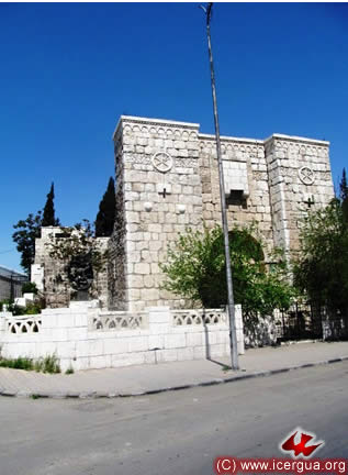 A la izquierda, la iglesia construido en la muralla de Damasco en el lugar desde donde Pablo fue descolgado en un cesto, cuando la muchedumbre de judíos quería matarlo.