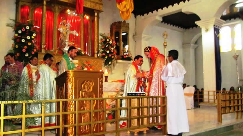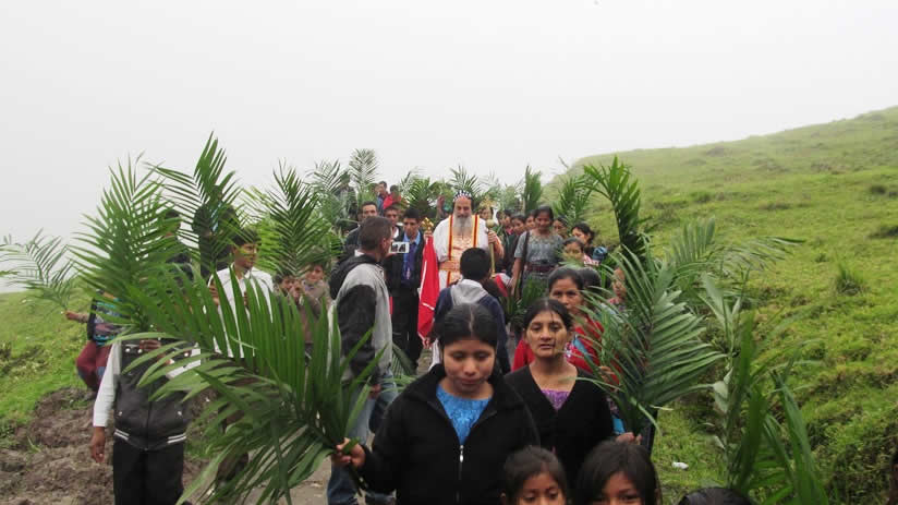 Los hermanos habían preparado una larga caminada desde el ingreso a la aldea. El Arzobispo bendijo los ramos que se utilizarían y en el momento oportuno se unió a la caminata, hasta llegar al templo.