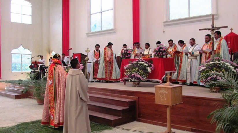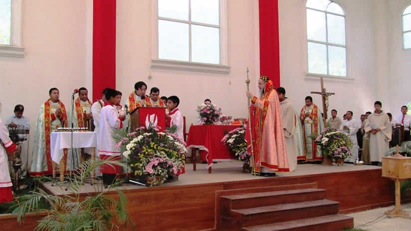 Al medio día del primero de marzo, Mor Santiago Eduardo, visitó por segunda vez el nuevo templo que está construyendo la comunidad de La Vega de Chicol, del Municipio de Santa Bárbara.