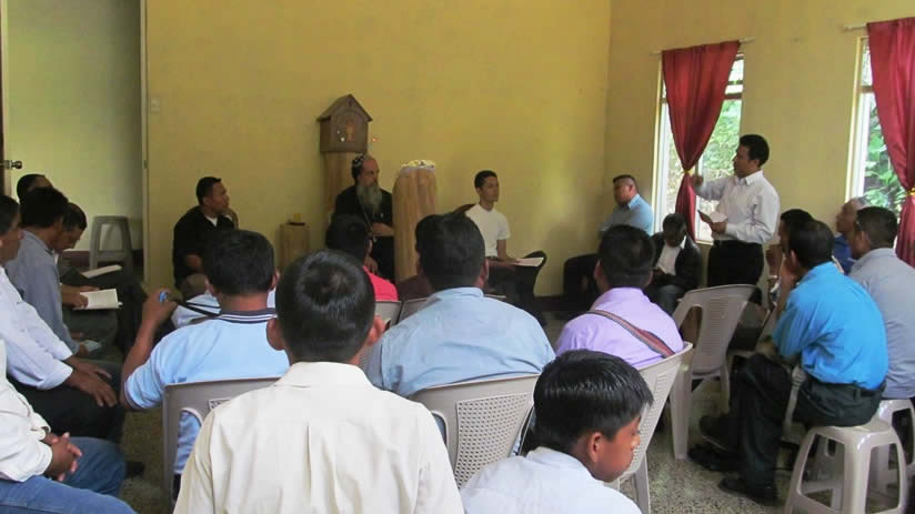 El miércoles cinco, en el Centro Misionero de Tomtem, Cobán, Alta Verapaz, se realizó el encuentro trimestral del presbiterio de la Vicaría del Norte de Guatemala. Estuvieron presentes todos los presbíteros y el diácono que trabajan en esa zona. Del Decanato del Sur Padres Ángel Antonio Cáseres y Fredy González, el Decanato de Ixcán, Padre Robinson Cumes y del Decanato de Petén, Padre Marco Antonio Xumux y diácono Gustavo Pineda. Del Decanato Ixil, Padre Paulino Bizarro, del de Uspántán y Zona Reyna Padre Óscar Guardado y de Cunén-Sacapulas, Padre Bernabé Nieto.