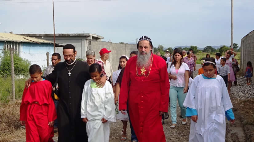 Un buen grupo de files le esperaba a la entrada de la comunidad, para hacer una caminata hasta el templo de la Purísima Concepción, que recientemente se ha incorporado como misión de la Santa Iglesia Siro-Ortodoxa de Antioquía, Arquidiócesis de Centro América.