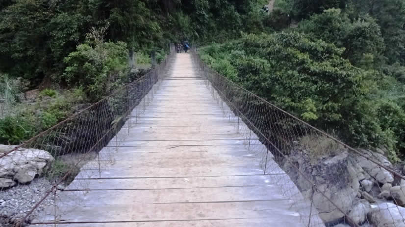 Llegar hasta la comunidad significó una cierta caminata, teniendo que pasar el puente de hamaca sobre el río Yulá San Juan, que divide Barillas de Santa Eulalia.