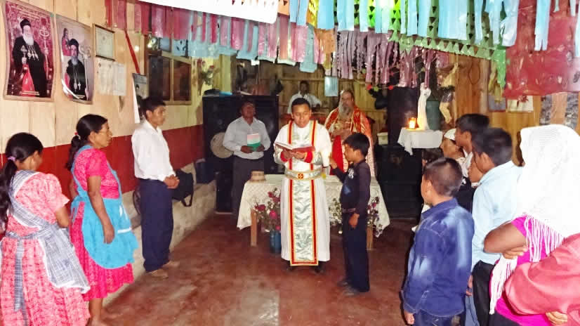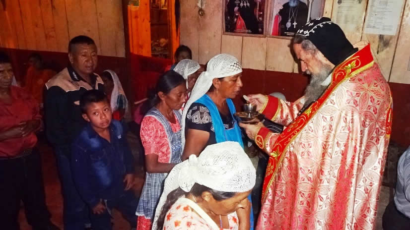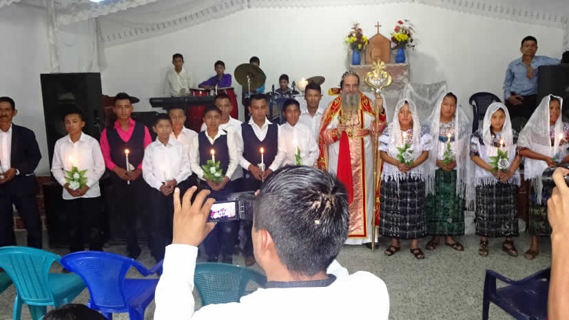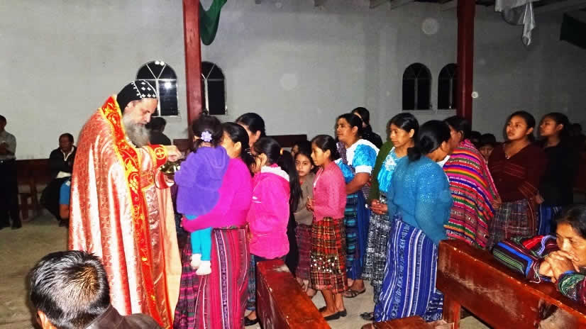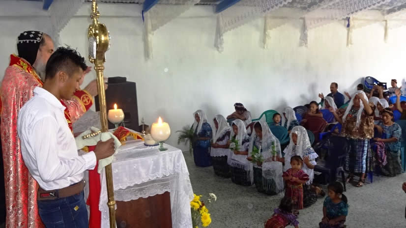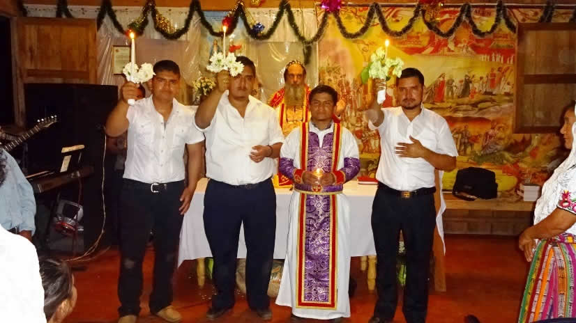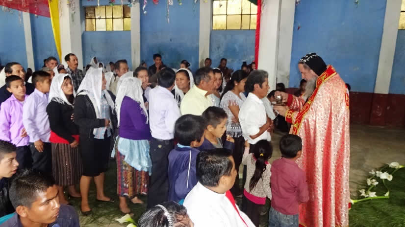 El primero por la noche, con numerosa participación de hermanos, se celebró la Divina Liturgia en la sede parroquial de la parroquia de la Renovación Carismática de Antioquía, en Guaxacaná, Nentón.