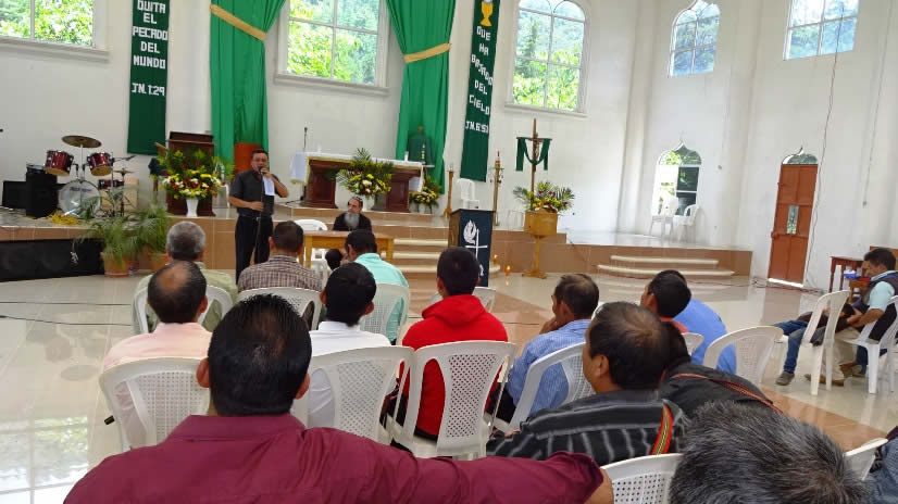 El sábado 16 por la tarde, representantes de las diferentes comunidades que tienen como centro de reuniones el municipio de Ahuachapán, El Salvador, se reunieron en el templo del Barrio El Diamante, para participar en la formación que impartió el arzobispo y que consistió prácticamente en una asamblea.