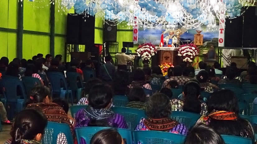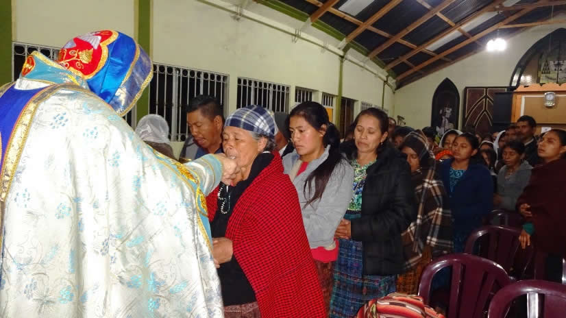 Al caer del día quince, Mor Santiago Eduardo llegó hasta la comunidad de Pentecostés, ubicada en el centro de la población de Santiago Atitlán.