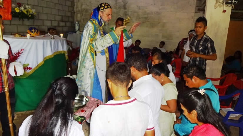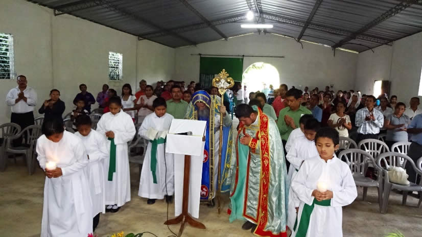 Antes del medio día el Arzobispo presidió la celebración de la Divina Liturgia, con los miembros de las comunidades de Guaymango, que pudieron asistir. Muchos estaban aún trabajando y no pudieron llegar.