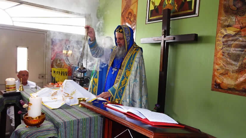 Al caer del día 16, Mor Santiago Eduardo presidió la celebración de la Divina Liturgia en el templo de la comunidad de El Diamante, de Ahuachapán.