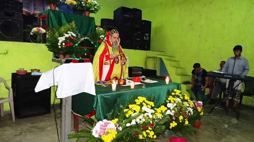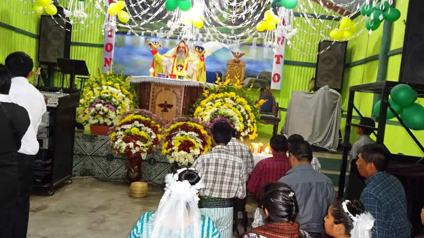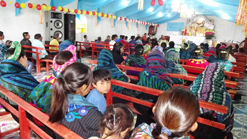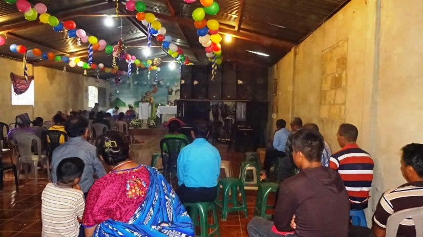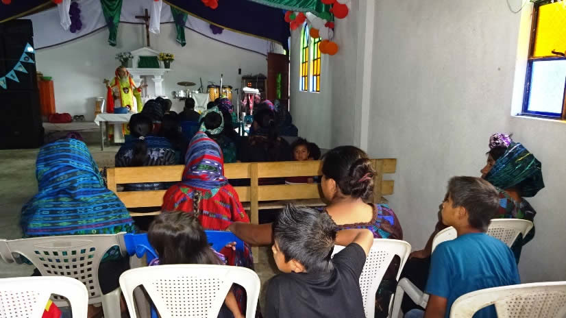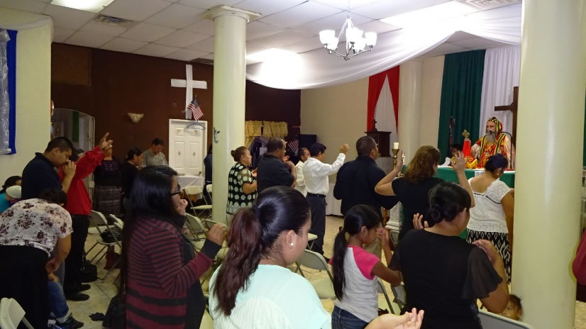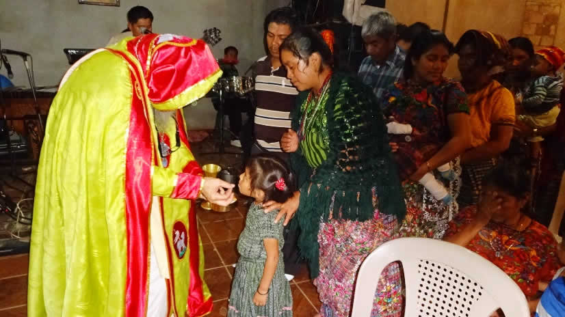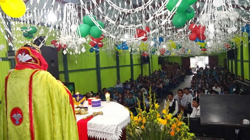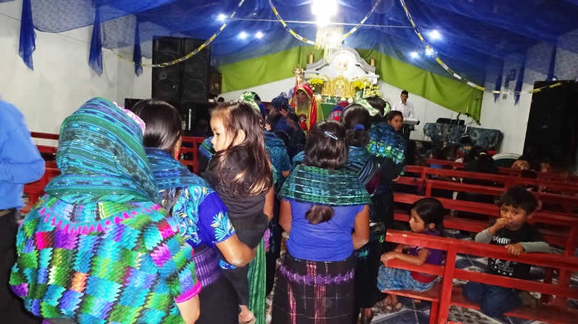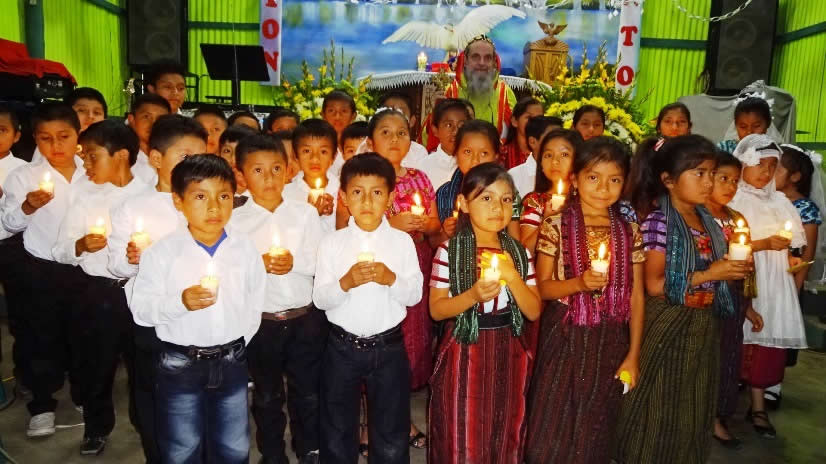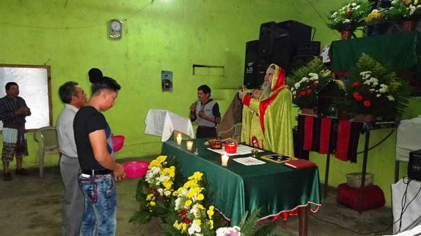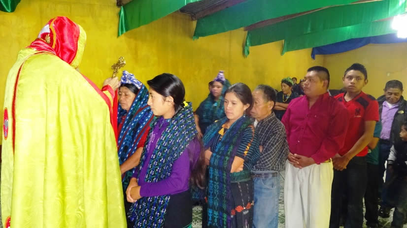 El primer por la noche, Mor Santiago Eduardo visitó la comunidad Nuevo Pentecostés, ubicada en el centro de la población de Santiago Atitlán, Sololá.