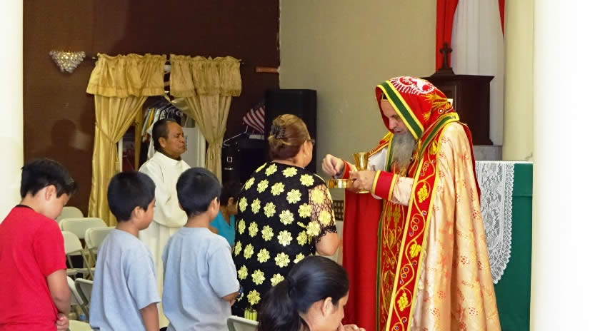 Concelebró la Divina Liturgia, el Padre Carlos Reyes, párroco local. La animación musical estuvo a cargo del ministerio de la comunidad de Guadalupe de Riverside.