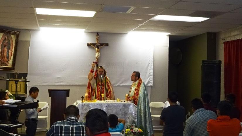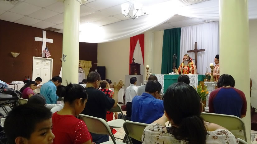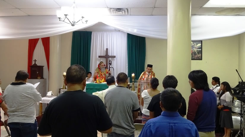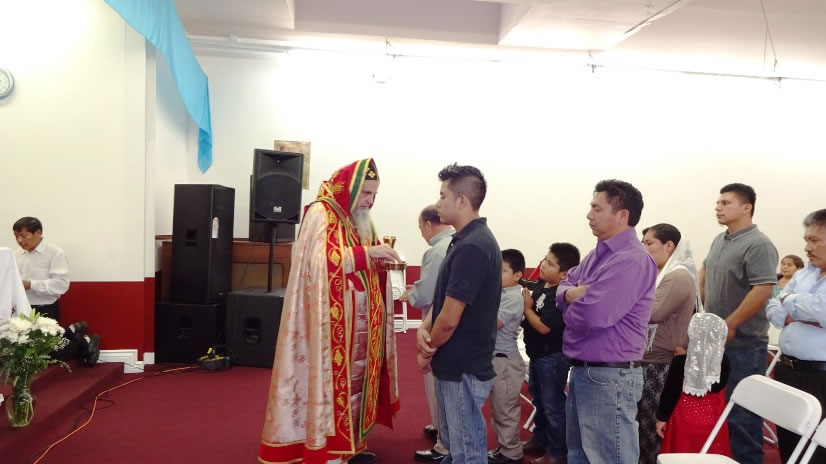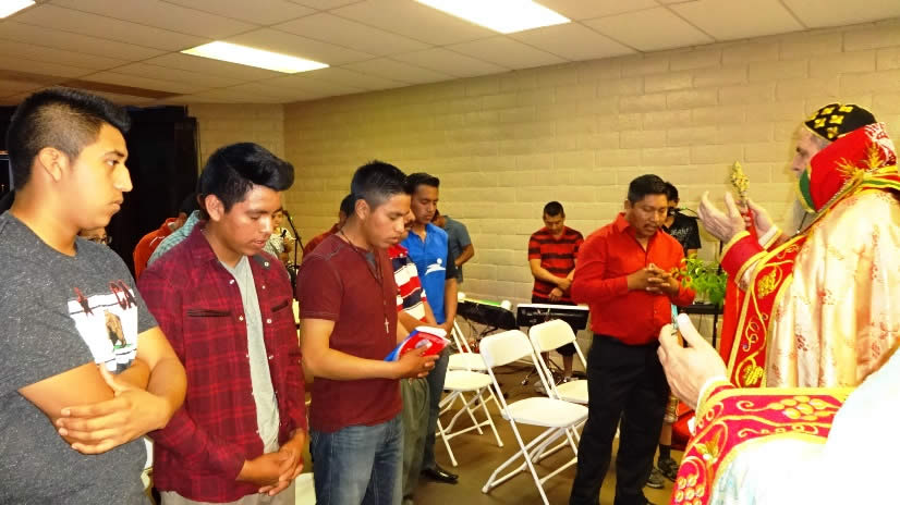 La visita del Arzobispo a la Parroquia de San Miguel Arcángel, terminó con la celebración de la Divina Liturgia, con los hermanos de la comunidad de Nuestra Señora de Guadalupe, Riverside, cuyas instalaciones acababan de ser bendecidas.