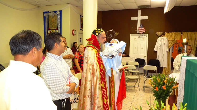 Al final de la celebración los esposos Antonio y Candelaria, trajeron a su hijo recién nacido, para que fuera presentado ante el Señor. El Arzobispo bendijo al nño e igualmente a los esposos.
