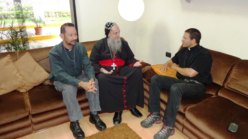 El sábado 15, la primera actividad que realizó Mor Santiago Eduardo fue una breve reunión con los ministros ordenados que trabajan en el área del Estado Portuguesa. Se trata del Padre Roberto Aguirre Lima, quien fue el iniciador de la misión en Venezuela y quien sigue trabajando en el área de Portuguesa y el diácono Moisés Nieto, quien se ha incorporado hace algún tiempo a la Santa Iglesia.