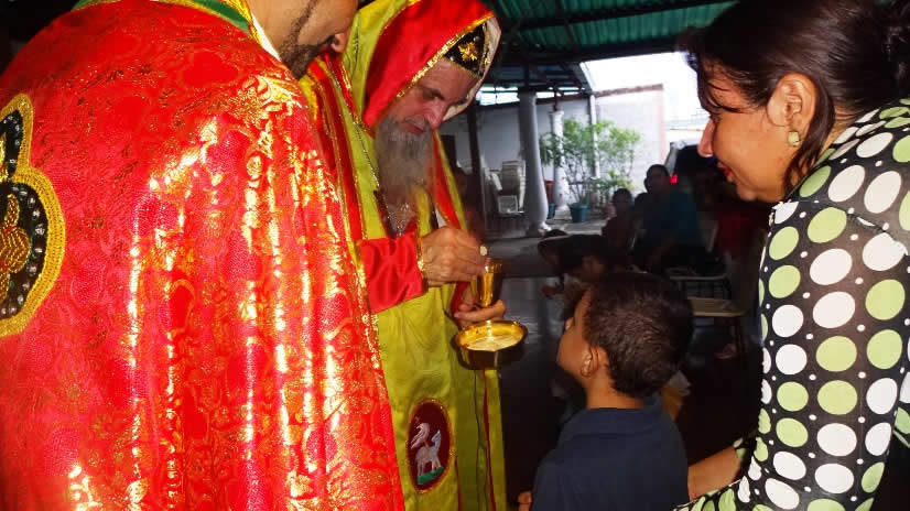 Con ocasión de la visita del Arzobispo, además de la administración del Sacramento de la Reconciliación y de la celebración de la Divina Liturgia, se administraron los sacramentos de la iniciación cristiana a 14 hermanos. Casi todos era niños pequeños, pero hubo incluso algún adulto.