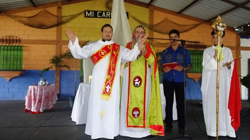 Al caer del día 8, Mor Santiago Eduardo llegó hasta la comunidad Nueva Vida, que se reúne en donde se encuentra la sede central de la Parroquia de San Miguel Arcángel.