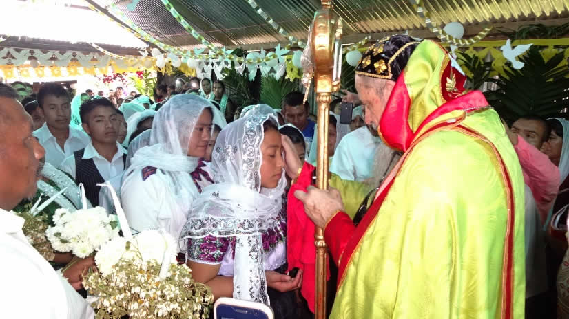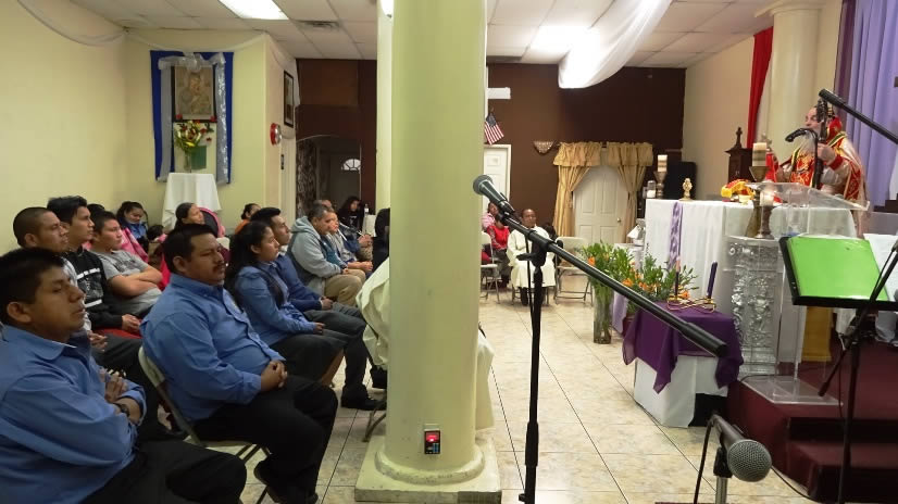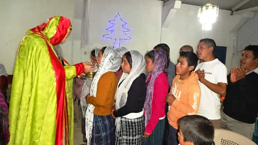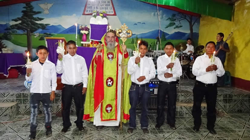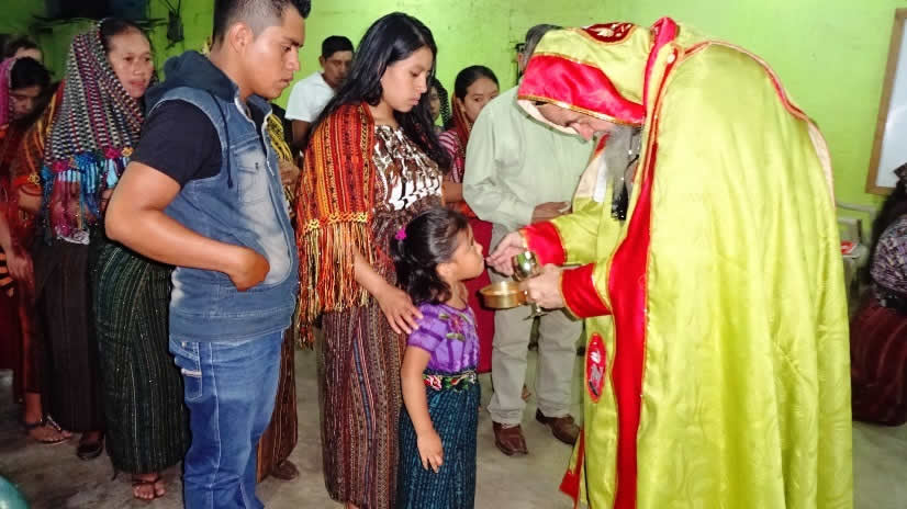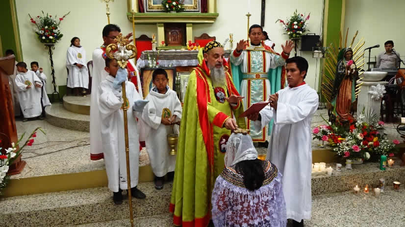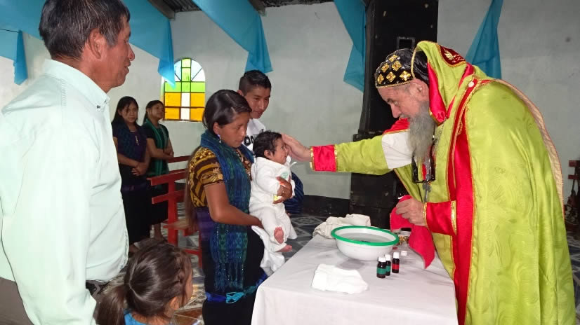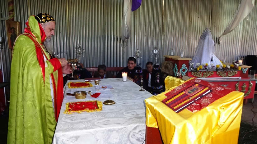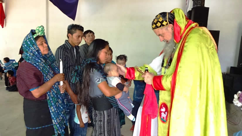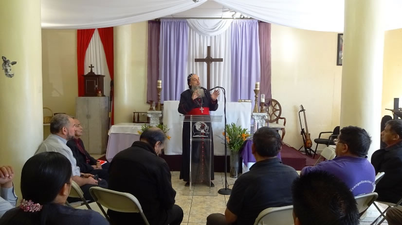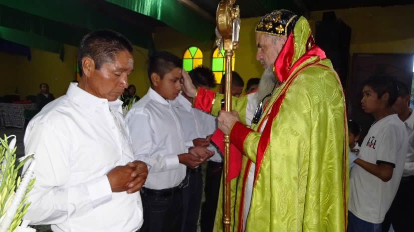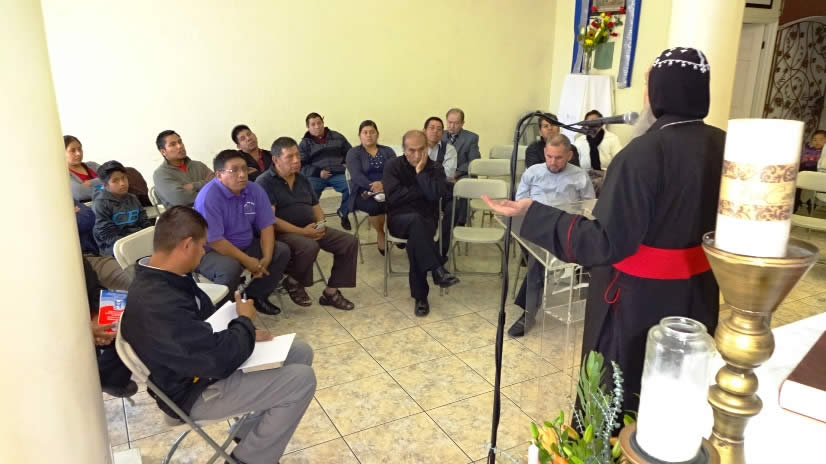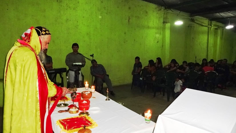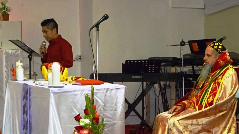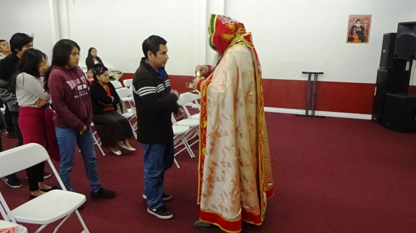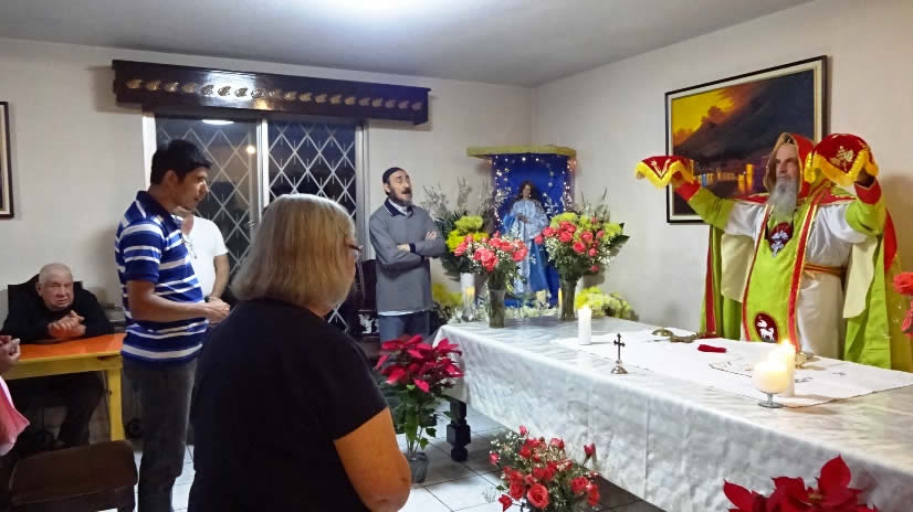 El siete por la tarde, víspera de la celebración de la Concepción de la Virgen María, Mor Santiago Eduardo celebró la divina liturgia con un grupo de fieles de la Iglesia que viven en San Bartolomé Milpas Altas.