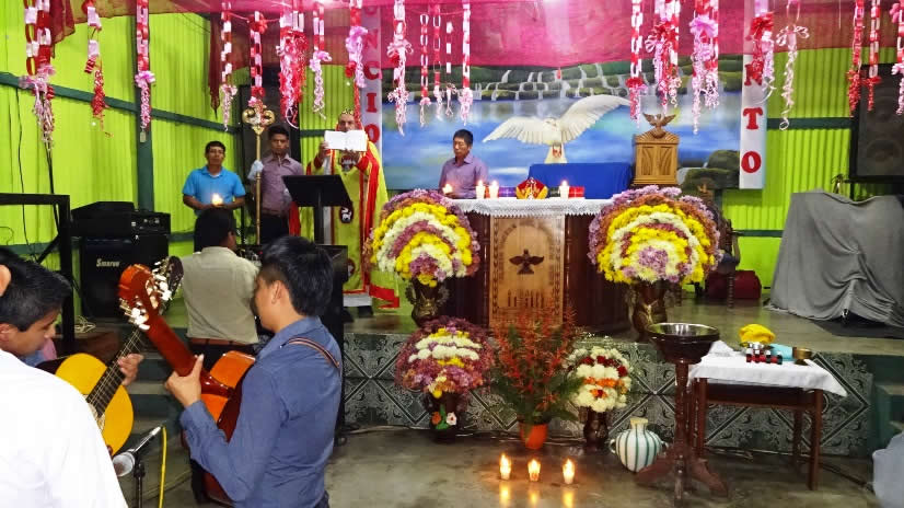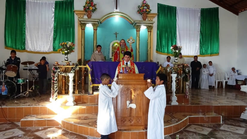 | 12: LITURGIA EN EL NUEVO TEMPLO PARROQUIAL DE SAN RAFAEL LA INDEPENDENCIA, HUEHUETENANGO. |