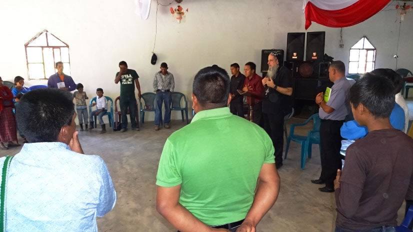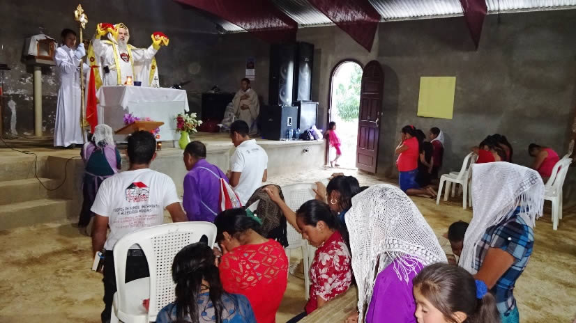 El cinco, después del medio día, Mor Santiago Eduardo, acompañado por el Padre Marcos Caicedo, visitó la comunidad de Yalanhuitz, de San Mateo Ixtatán.